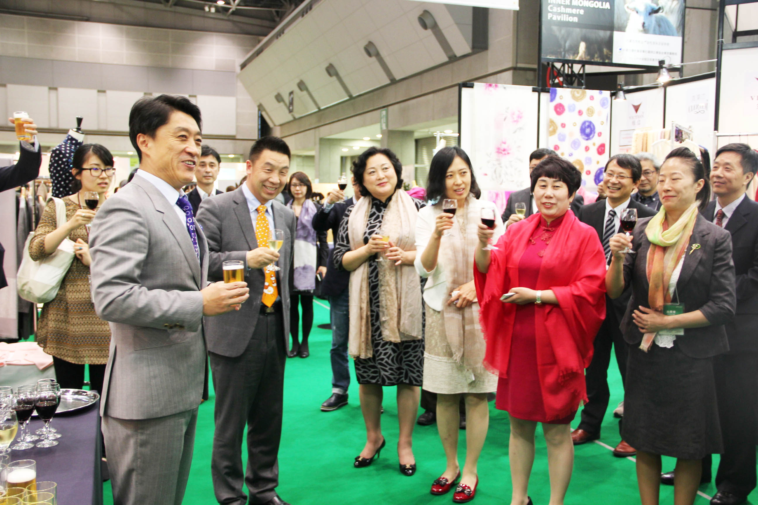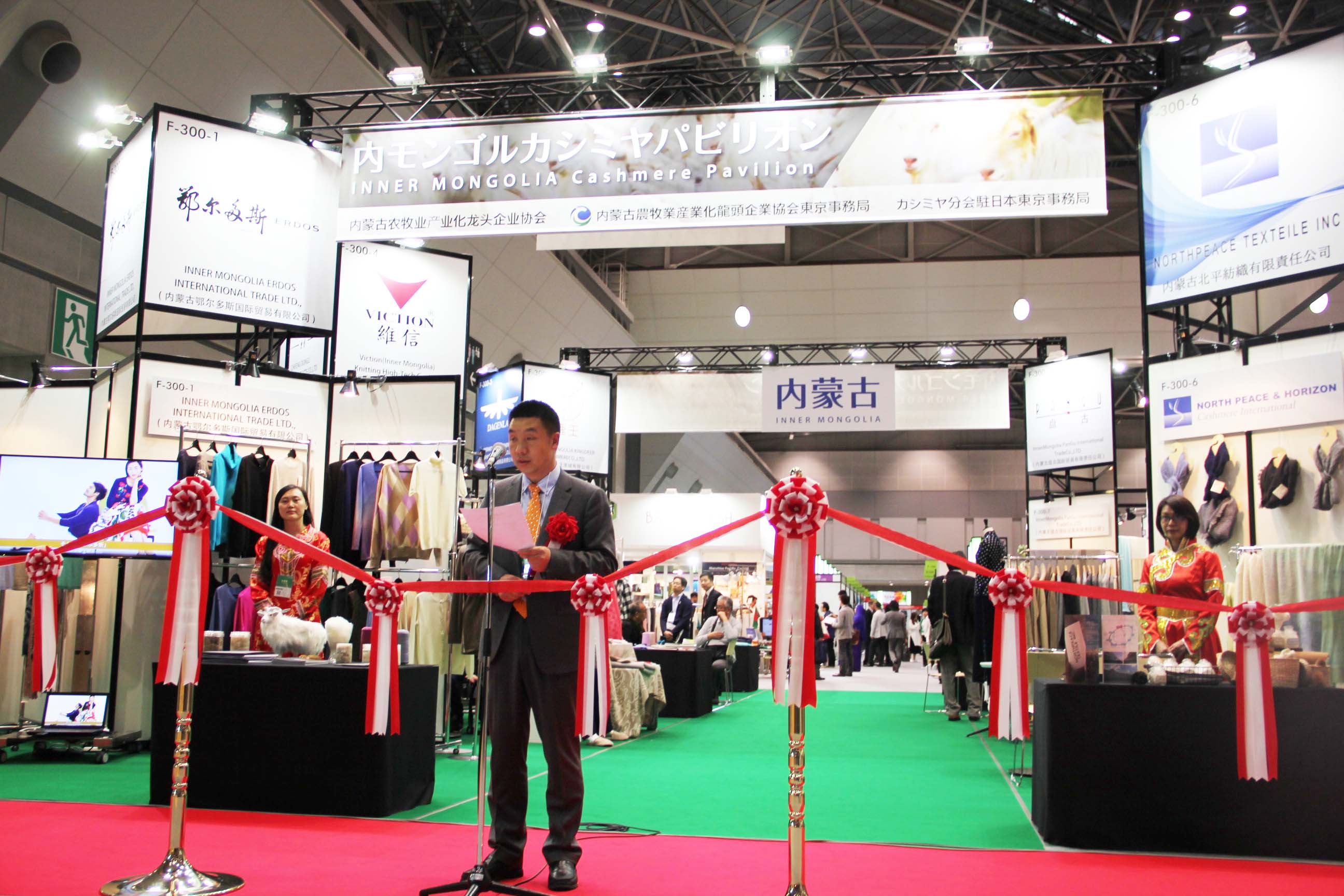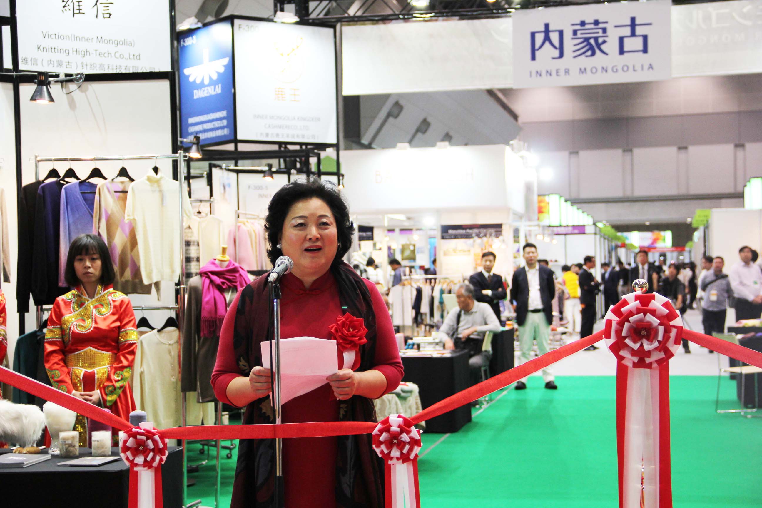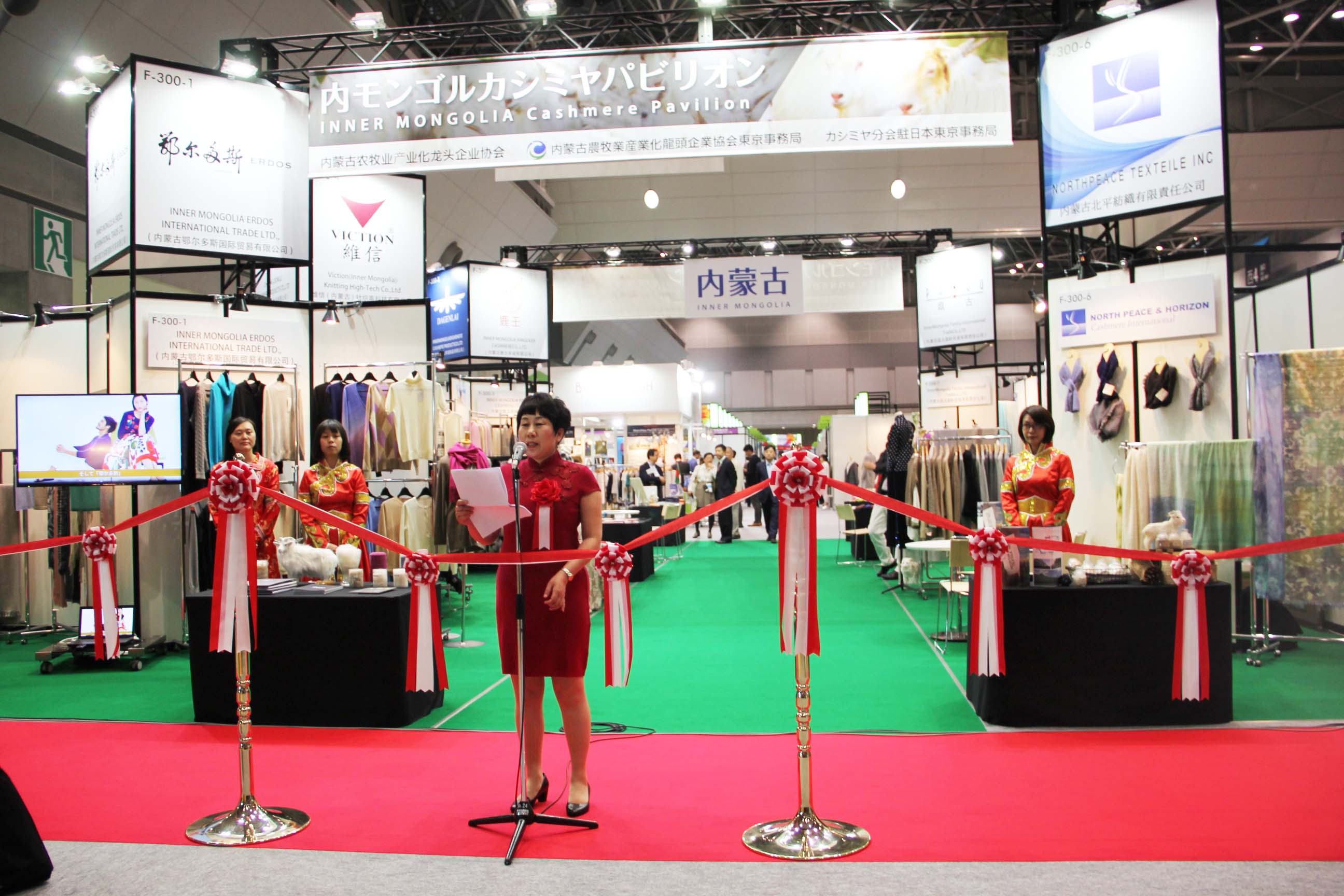 2016426日上午11時(shí),在內(nèi)蒙古羊絨展區(qū)前,舉行了盛大的開業(yè)剪彩儀式,內(nèi)蒙古自治農(nóng)牧業(yè)廳產(chǎn)業(yè)化處副處長郟金梅、內(nèi)蒙古農(nóng)牧產(chǎn)業(yè)化龍頭企業(yè)協(xié)會(huì)會(huì)長閆樹春、內(nèi)蒙古農(nóng)牧產(chǎn)業(yè)化龍頭企業(yè)協(xié)會(huì)羊絨產(chǎn)業(yè)分會(huì)會(huì)長王風(fēng)之出席剪彩儀式,并分別就政府支持、協(xié)會(huì)服務(wù)和企業(yè)自律發(fā)展等幾方面做了精彩致辭。郟金梅副處長表示,希望通過此次活動(dòng),使得社會(huì)各界代表能夠贏得機(jī)遇、拓展空間,取得豐碩的成果,同時(shí)真誠盼望各方來賓、新老朋友能夠進(jìn)一步了解內(nèi)蒙古羊絨,認(rèn)識(shí)內(nèi)蒙古羊絨,并以此為契機(jī),加強(qiáng)內(nèi)蒙古羊絨界與日本企業(yè)的合作,攜手發(fā)展,實(shí)現(xiàn)共贏,共創(chuàng)輝煌。閆樹春會(huì)長在致辭中講到,我們此行不僅是要展示內(nèi)蒙古羊絨原料優(yōu)勢地位和行業(yè)加工的專業(yè)性,更希望能充分利用各個(gè)平臺(tái)廣泛交流,探討合作途徑的契合點(diǎn),推動(dòng)兩國羊絨行業(yè)多方共贏,共同提升全球市場對(duì)羊絨產(chǎn)品的認(rèn)知度,希望我們的羊絨企業(yè)能團(tuán)結(jié)一致,實(shí)現(xiàn)羊絨產(chǎn)業(yè)的可持續(xù)發(fā)展。羊絨產(chǎn)業(yè)分會(huì)會(huì)長王風(fēng)之在致辭中表示,通過內(nèi)蒙古農(nóng)牧業(yè)產(chǎn)業(yè)化龍頭企業(yè)協(xié)會(huì)羊絨分會(huì)的平臺(tái),我們勢必會(huì)在培育超細(xì)超長型產(chǎn)絨山羊、提升優(yōu)質(zhì)種群的規(guī)模、建立行業(yè)質(zhì)量標(biāo)準(zhǔn)和抱團(tuán)發(fā)展,積極進(jìn)行海外市場渠道、品牌、投資等多方面取得突破性進(jìn)展,致力于將中國內(nèi)蒙古羊絨打造成為全球性的產(chǎn)業(yè)品牌。