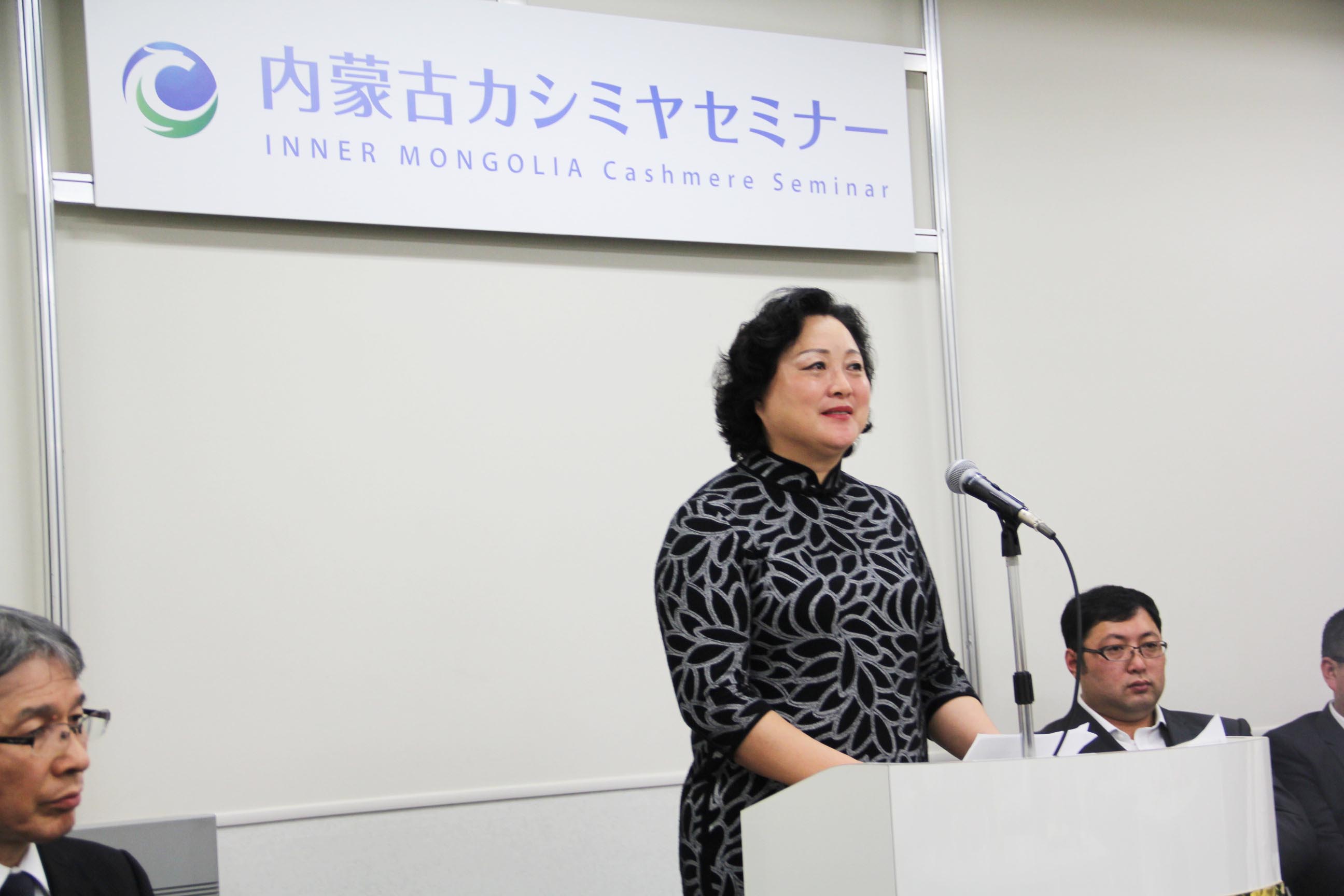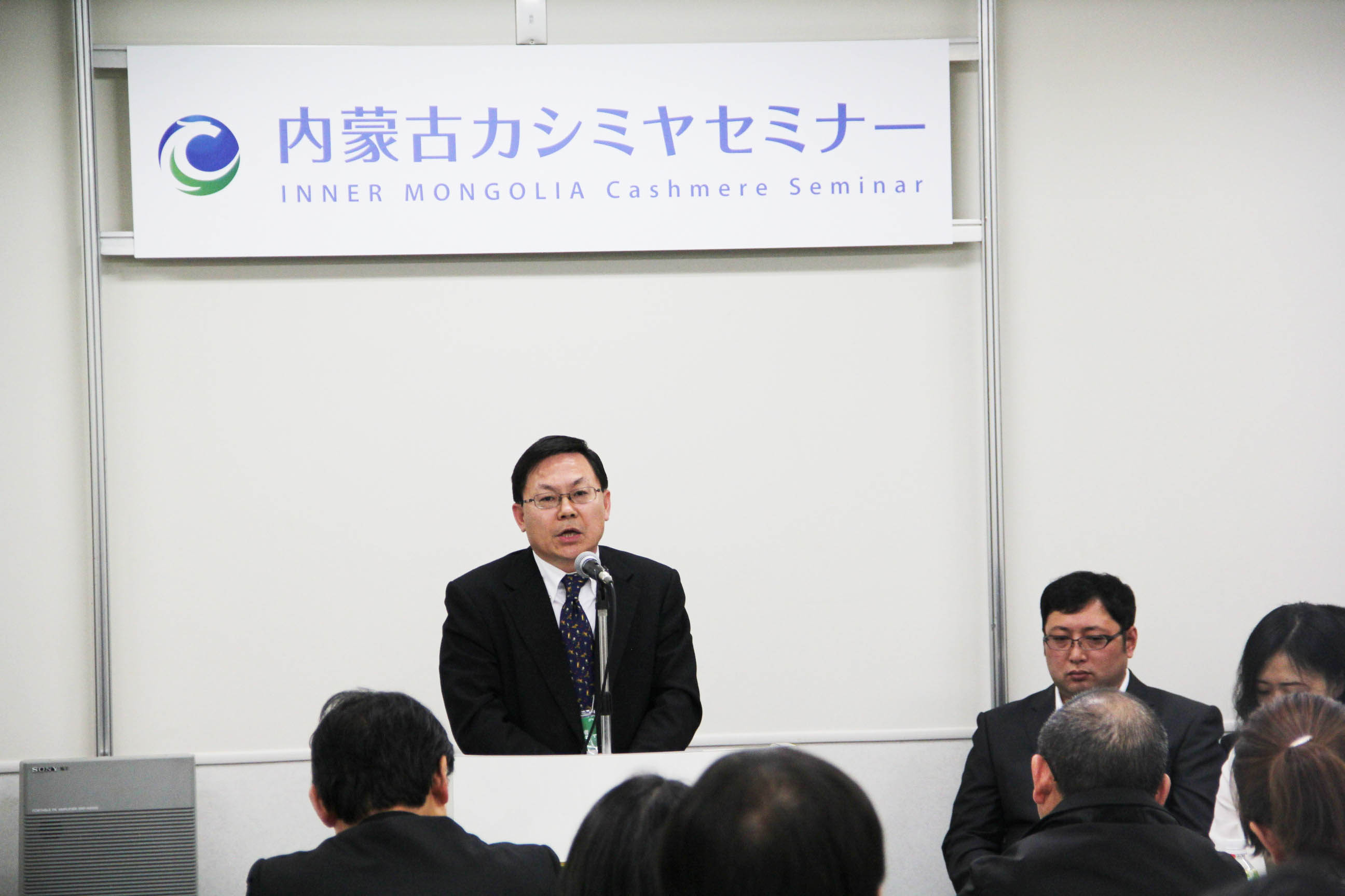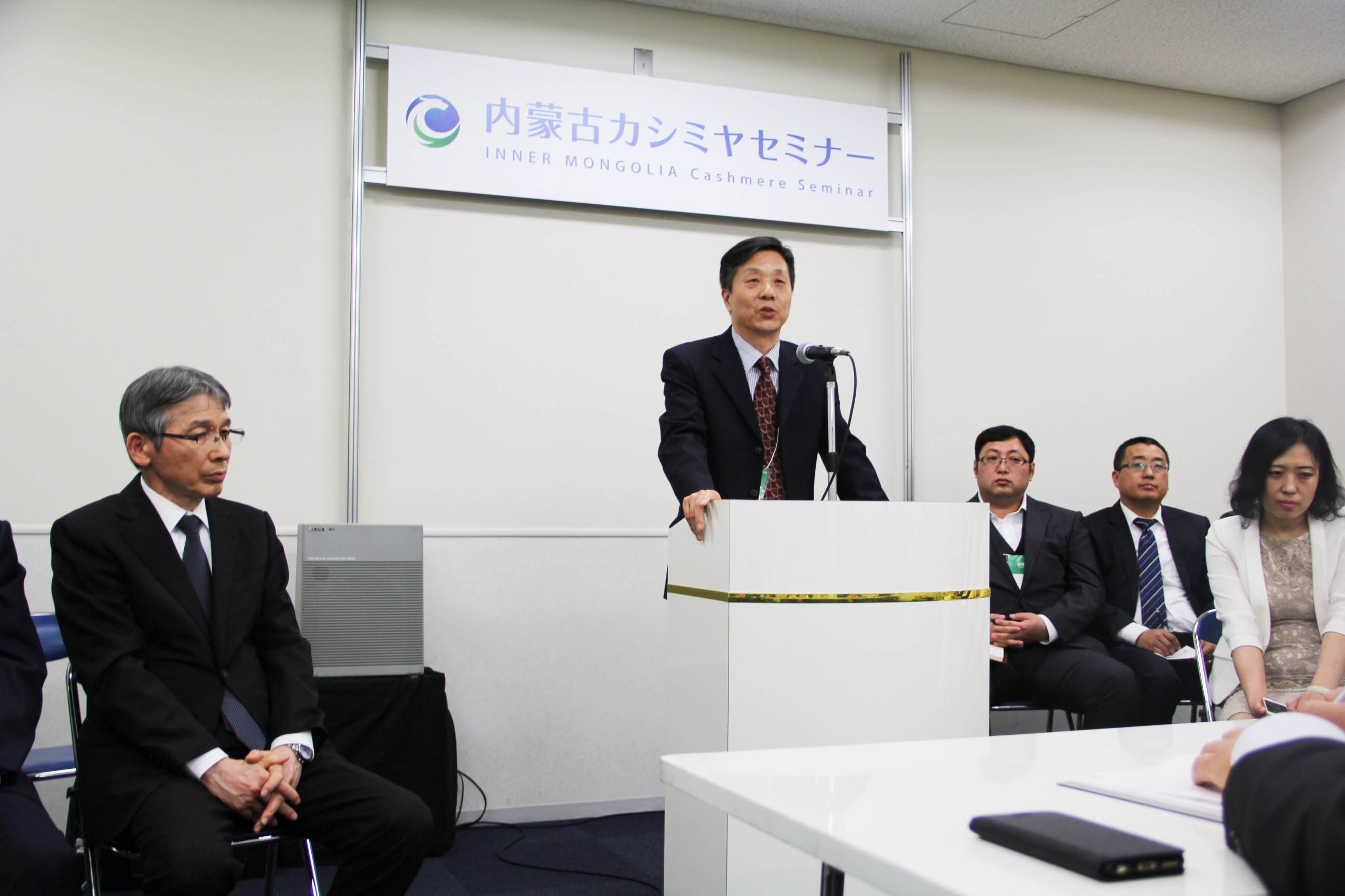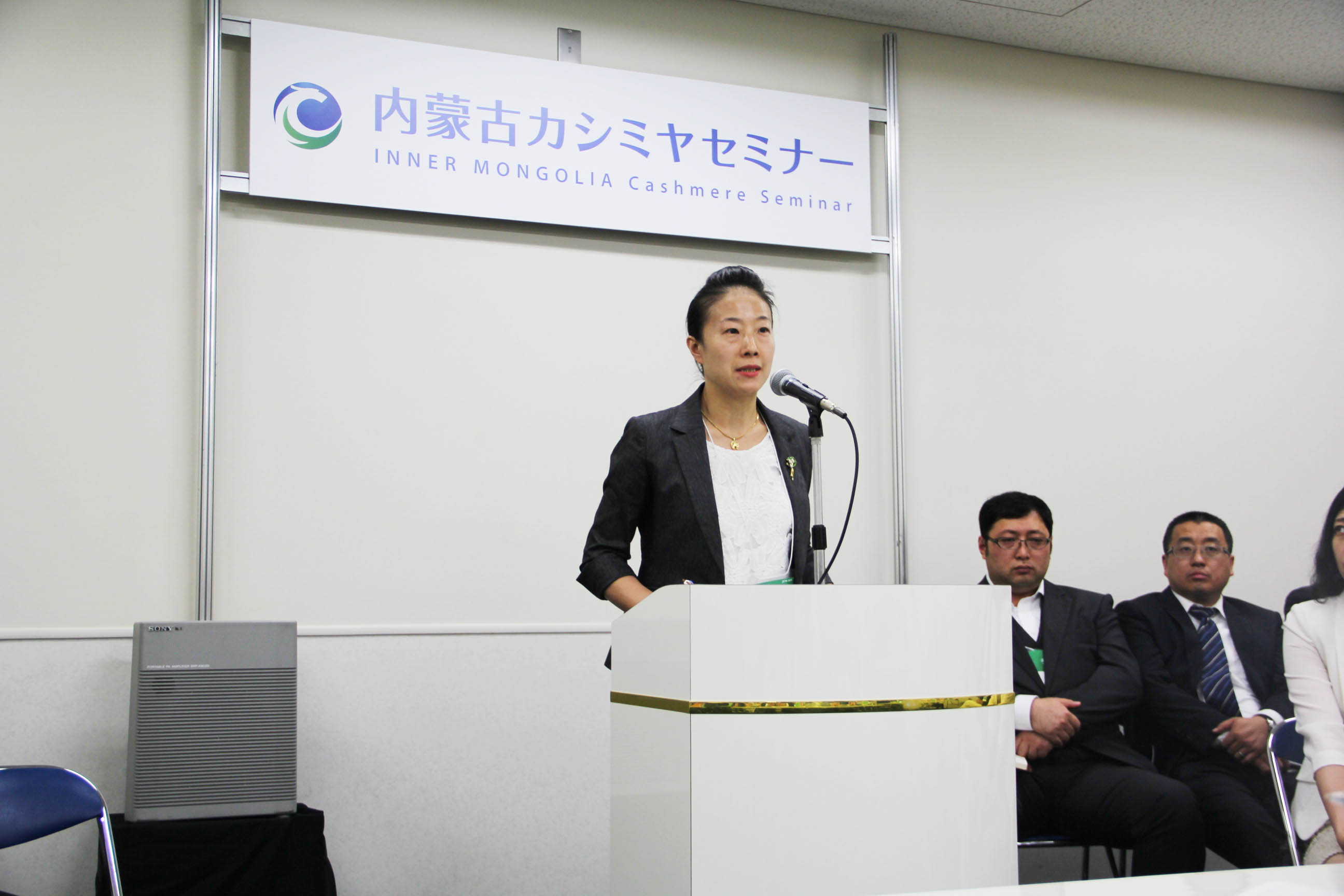 2016426日上午11時(shí),在內(nèi)蒙古羊絨展區(qū)前,舉行了盛大的開業(yè)剪彩儀式,內(nèi)蒙古自治農(nóng)牧業(yè)廳產(chǎn)業(yè)化處副處長郟金梅、內(nèi)蒙古農(nóng)牧產(chǎn)業(yè)化龍頭企業(yè)協(xié)會(huì)會(huì)長閆樹春、內(nèi)蒙古農(nóng)牧產(chǎn)業(yè)化龍頭企業(yè)協(xié)會(huì)羊絨產(chǎn)業(yè)分會(huì)會(huì)長王風(fēng)之出席剪彩儀式,并分別就政府支持、協(xié)會(huì)服務(wù)和企業(yè)自律發(fā)展等幾方面做了精彩致辭。郟金梅副處長表示,希望通過此次活動(dòng),使得社會(huì)各界代表能夠贏得機(jī)遇、拓展空間,取得豐碩的成果,同時(shí)真誠盼望各方來賓、新老朋友能夠進(jìn)一步了解內(nèi)蒙古羊絨,認(rèn)識(shí)內(nèi)蒙古羊絨,并以此為契機(jī),加強(qiáng)內(nèi)蒙古羊絨界與日本企業(yè)的合作,攜手發(fā)展,實(shí)現(xiàn)共贏,共創(chuàng)輝煌。閆樹春會(huì)長在致辭中講到,我們此行不僅是要展示內(nèi)蒙古羊絨原料優(yōu)勢地位和行業(yè)加工的專業(yè)性,更希望能充分利用各個(gè)平臺(tái)廣泛交流,探討合作途徑的契合點(diǎn),推動(dòng)兩國羊絨行業(yè)多方共贏,共同提升全球市場對(duì)羊絨產(chǎn)品的認(rèn)知度,希望我們的羊絨企業(yè)能團(tuán)結(jié)一致,實(shí)現(xiàn)羊絨產(chǎn)業(yè)的可持續(xù)發(fā)展。羊絨產(chǎn)業(yè)分會(huì)會(huì)長王風(fēng)之在致辭中表示,通過內(nèi)蒙古農(nóng)牧業(yè)產(chǎn)業(yè)化龍頭企業(yè)協(xié)會(huì)羊絨分會(huì)的平臺(tái),我們勢必會(huì)在培育超細(xì)超長型產(chǎn)絨山羊、提升優(yōu)質(zhì)種群的規(guī)模、建立行業(yè)質(zhì)量標(biāo)準(zhǔn)和抱團(tuán)發(fā)展,積極進(jìn)行海外市場渠道、品牌、投資等多方面取得突破性進(jìn)展,致力于將中國內(nèi)蒙古羊絨打造成為全球性的產(chǎn)業(yè)品牌。