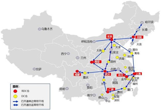 內(nèi)蒙古是我國(guó)最大的牛羊肉產(chǎn)地,其主產(chǎn)區(qū)集中在內(nèi)蒙古東部。內(nèi)蒙古地區(qū)東西跨度非常長(zhǎng),直線距離高達(dá)2305KM,跨盟市運(yùn)輸距離往往也超過500KM,如果跨盟市進(jìn)行中轉(zhuǎn)集散,將會(huì)產(chǎn)生高昂的干線運(yùn)輸費(fèi)用,而長(zhǎng)距離的運(yùn)輸也會(huì)導(dǎo)致整體運(yùn)輸時(shí)效的降低。同時(shí),牛羊肉對(duì)冷鏈運(yùn)輸具有極強(qiáng)的依賴性,必須進(jìn)行冷凍、冷藏。根據(jù)這個(gè)特點(diǎn),順豐推出了針對(duì)內(nèi)蒙古牛羊肉冷鏈運(yùn)輸?shù)慕鉀Q方案,順豐冷鏈運(yùn)輸網(wǎng)絡(luò)圍繞牛羊肉主生產(chǎn)區(qū),再進(jìn)入全國(guó)冷鏈運(yùn)輸網(wǎng)。針對(duì)內(nèi)蒙古牛羊肉主生產(chǎn)區(qū)位于東部,順豐在干線網(wǎng)絡(luò)圍繞內(nèi)蒙古東部開展,干線開設(shè)就近轉(zhuǎn)接目前已開通的冷鏈運(yùn)輸網(wǎng)絡(luò)節(jié)點(diǎn),可避免直發(fā)成本高的問題并提升現(xiàn)有干線裝卸率。