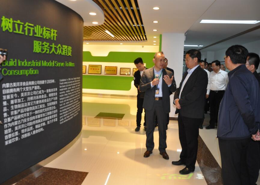 201759日下午,陽光明媚,綠意盎然,內(nèi)蒙古美洋洋食品有限公司廠區(qū)內(nèi)洋溢著一片欣欣向榮的景象。內(nèi)蒙古自治區(qū)政府副主席王波一行,在巴彥淖爾市政府市長張曉兵等領導的陪同下,蒞臨公司參觀調(diào)研,總經(jīng)理張振民熱情接待并全程陪同講解。