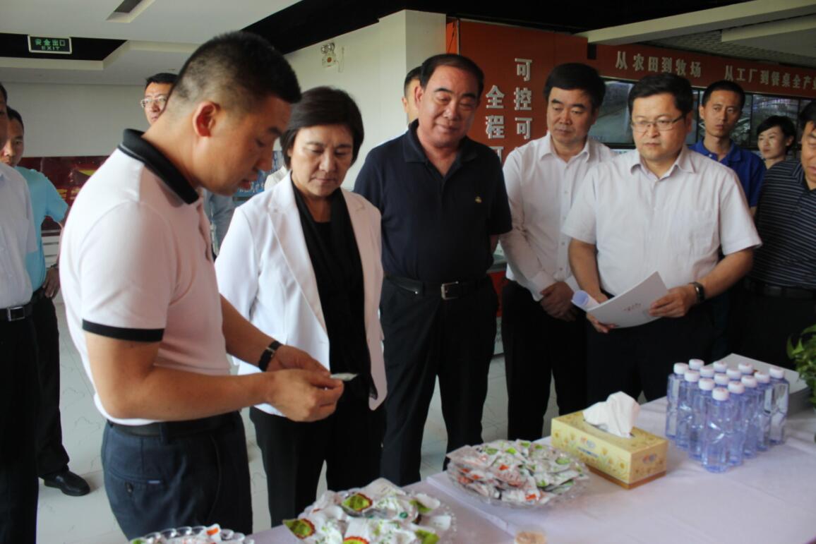 布小林主席一行先后參觀了蒙羊生產(chǎn)車間、文化長廊和產(chǎn)品展廳,全面了解了蒙羊的發(fā)展歷程、企業(yè)文化、先進(jìn)的生產(chǎn)加工工藝以及多樣化的羊肉加工產(chǎn)品,詳細(xì)了解蒙羊牧業(yè)在肉羊良種繁育、規(guī)?;B(yǎng)殖、標(biāo)準(zhǔn)化生產(chǎn)深加工等全產(chǎn)業(yè)鏈運(yùn)營情況,詢問了蒙羊在產(chǎn)業(yè)扶貧方面的最新進(jìn)展情況,對蒙羊牧業(yè)積極推進(jìn)肉羊產(chǎn)業(yè)扶貧項目,構(gòu)建“農(nóng)戶+合作社+企業(yè)+擔(dān)保公司+保險+銀行”六位一體的創(chuàng)新羊聯(lián)體模式,與農(nóng)牧民、養(yǎng)殖大戶及合作社形成利益聯(lián)結(jié)機(jī)制,通過不同合作模式鼓勵農(nóng)牧民養(yǎng)殖改良能繁母羊,解決農(nóng)牧民融資難題等方面的做法予以了肯定。