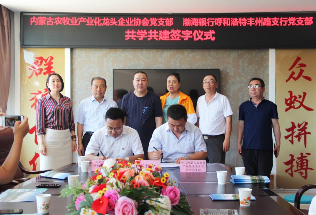 活動(dòng)過程中,為創(chuàng)造性地推進(jìn)黨組織“共學(xué)共建”結(jié)對(duì)工作,圍繞新時(shí)代黨的建設(shè)總要求,內(nèi)蒙古農(nóng)牧業(yè)產(chǎn)業(yè)化龍頭企業(yè)協(xié)會(huì)黨支部和渤海銀行呼和浩特豐州路支行黨支部簽訂了《共學(xué)共建結(jié)對(duì)協(xié)議》。通過結(jié)對(duì)共建,在弘揚(yáng)社會(huì)正能量、加強(qiáng)愛國主義教育等方面樹立新典型,力爭在構(gòu)建銀企合作關(guān)系等方面取得新突破。