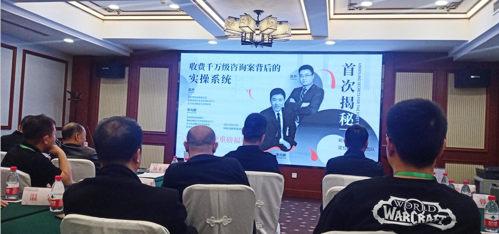 2021419日上午,由內(nèi)蒙古農(nóng)牧業(yè)產(chǎn)業(yè)化龍頭企業(yè)協(xié)會和上海黑蝶戰(zhàn)略定位主辦,呼市成略定位咨詢承辦的前特勞特定位首席團(tuán)隊(duì)-首次揭秘“收費(fèi)千萬級咨詢案背后的實(shí)操系統(tǒng)”課程在呼和浩特市賓悅大酒店舉辦。協(xié)會執(zhí)行會長林永亮應(yīng)邀參加本次課程。