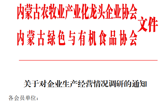 二、為解決疫情期間龍頭企業(yè)生產經營困難和民生所需,更好的服務于會員單位,協(xié)會秘書處重點對企業(yè)生產復工、經營現(xiàn)狀、存在的困難與建議等情況進行調研,協(xié)會先后聯(lián)系對接200余家企業(yè),梳理共性問題及建議10余條,待形成調研分析報告后報送至自治區(qū)有關部門,為助力內蒙古打贏疫情攻堅戰(zhàn)做出積極貢獻。