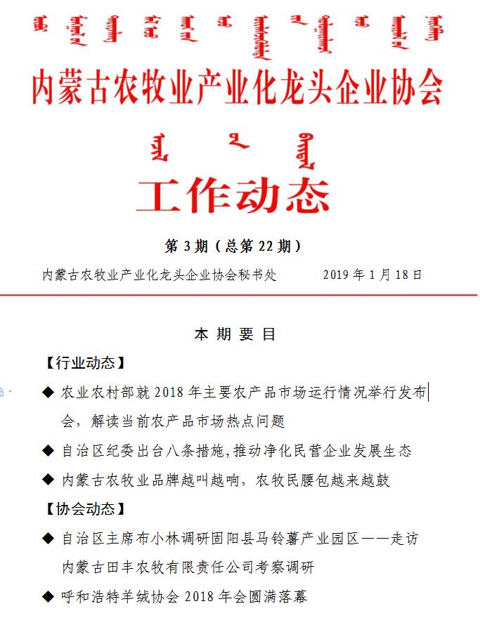 內(nèi)蒙古農(nóng)牧業(yè)產(chǎn)業(yè)化龍頭企業(yè)協(xié)會(huì)工作動(dòng)態(tài)第3期(總第22期)