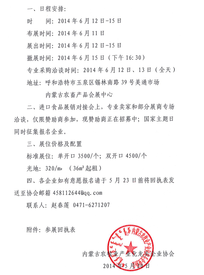 關(guān)于參加第一屆內(nèi)蒙古國際食品貿(mào)易對(duì)接會(huì)的通知