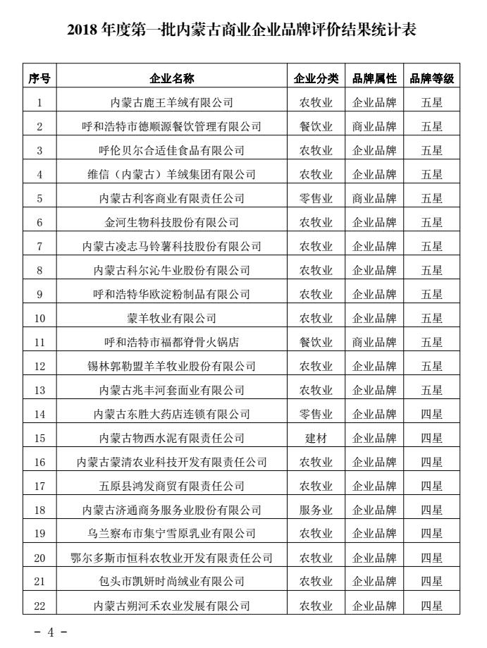 關(guān)于2018年度第一批內(nèi)蒙古商業(yè)企業(yè)品牌評(píng)價(jià)結(jié)果的公示