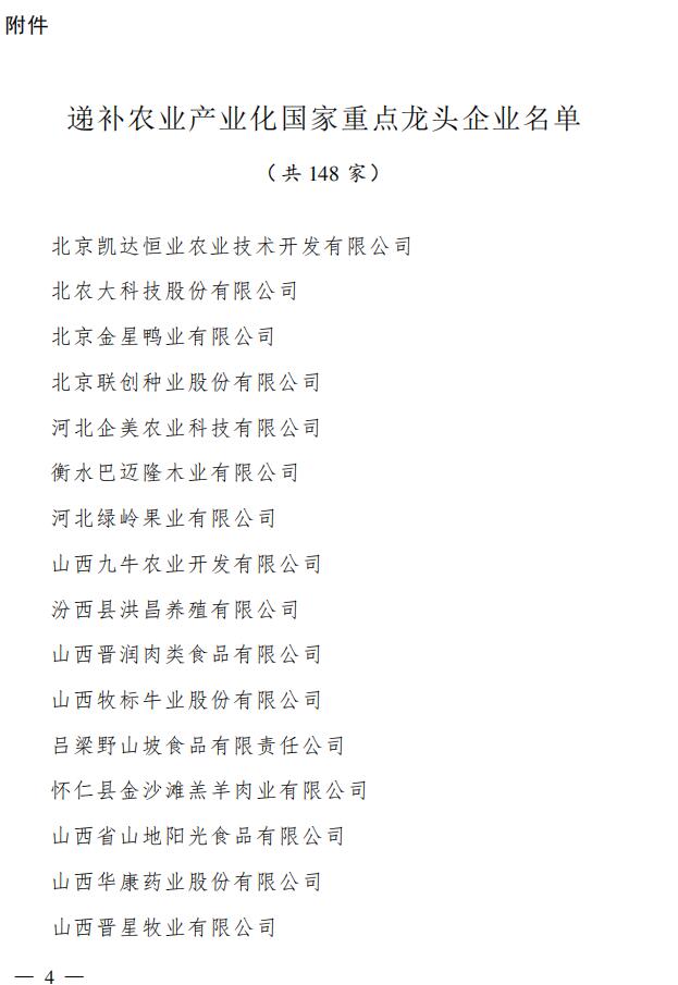 附件:新遞補(bǔ)的農(nóng)業(yè)產(chǎn)業(yè)化國家重點龍頭企業(yè)名單(共148 家)