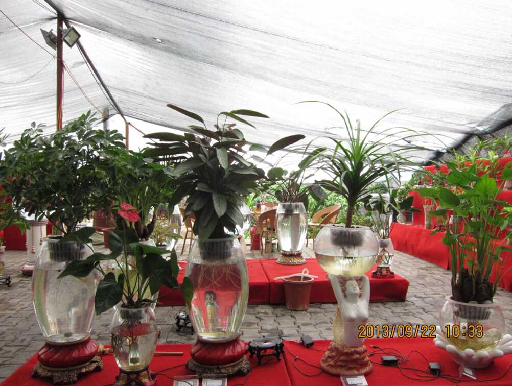 、形式多樣:水培花卉即可象普通花卉一樣一株一盆,也可以組合成盆栽藝術(shù)品;如果承接大型園林工程,可以融入山、水、魚、橋等,花在水中長(zhǎng),魚在池中游,景色新穎,高雅別致;也可將水培花卉培養(yǎng)在飯桌、茶幾、吧臺(tái)上,形成生態(tài)家具。辦公室、酒吧、咖啡屋、餐廳如果擺上這樣的家具,在吃飯、開(kāi)會(huì)聊天時(shí),又可觀賞奇花異景,平添高雅情調(diào)。