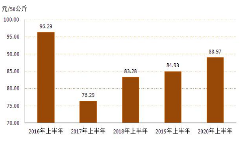 3   20162020年上半年全區(qū)小麥?zhǔn)召弮r(jià)格對(duì)比圖